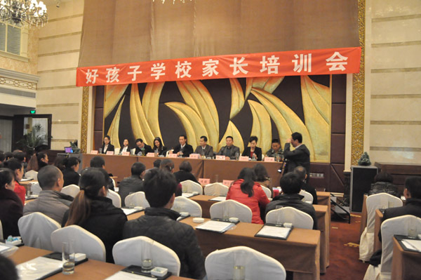 2013年12月14日下午,安寧市好孩子教育培訓學校舉辦了期末家長培訓會,此次參加培訓的家長共182人。學校校長魯植、常務副校長趙培亨、副校長周榕樺、校長助理李新紅、行政辦公室主任夏藝璇、總教官毛積敏等學校領導及部分班主任出席了會議。會議開幕式上,省教育廳現場授予了我校“云南省教育廳聯合寶貝科研項目合作基地”的牌匾。