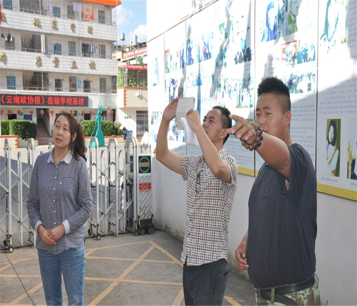 2015年9月24日下午,《云南政協報》記者(伏自文)到我校采訪。 我校副校長(毛積敏)、校長助理(李新紅)陪同伏記者參觀了學校的教學樓、辦公樓、宿舍樓、食堂等硬件設施,并觀看了教育教學活動短片。 隨后,毛副校長向伏記者介紹了學校的管理模式、辦學理念及今后的發展目標等,得到了伏記者的充分肯定和贊揚,他認為像我校這樣一所不計利益、一心為做好教育的學校一定會越辦越好,還表示,今后將繼續關注我校發展,共同為孩子們的健康成長盡一份力!