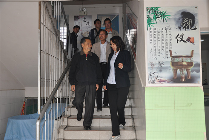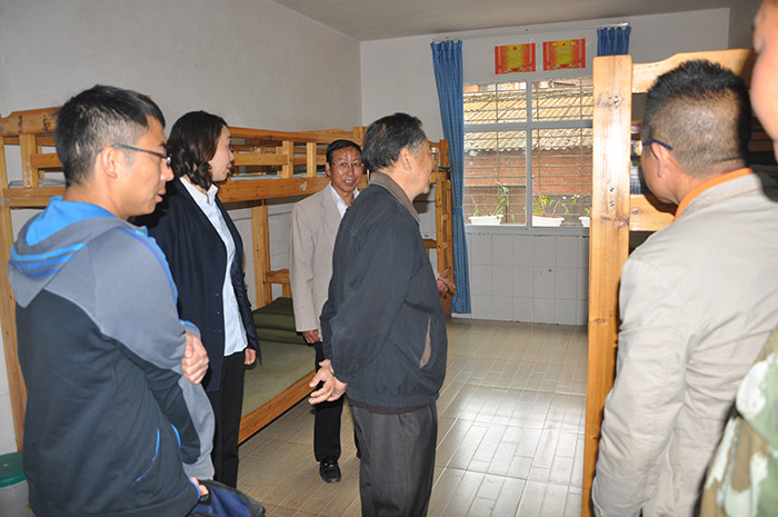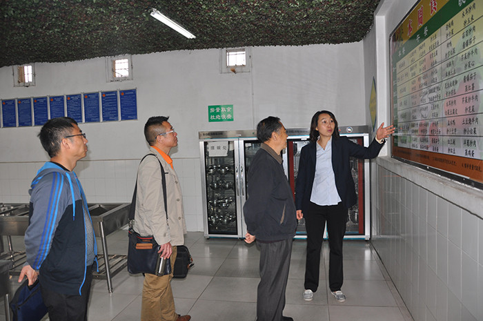 張主任一行在學校校長助理李新紅的陪同下,參觀了學校教學區、宿舍、食堂以及宣傳櫥窗等,并觀看了學校教育教學短片。