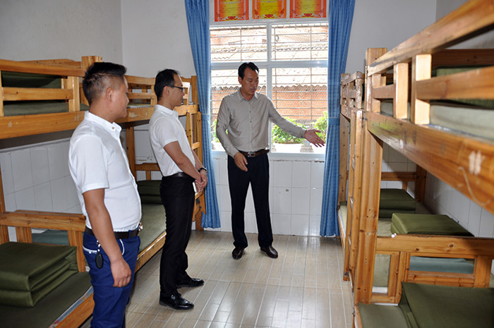 張沖校長一行在的陪同下,參觀了學校的辦公樓、教學樓、食堂、學生宿舍、監控等學校硬件設施,并在多媒體教室觀看了學校教學活動短片。