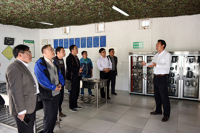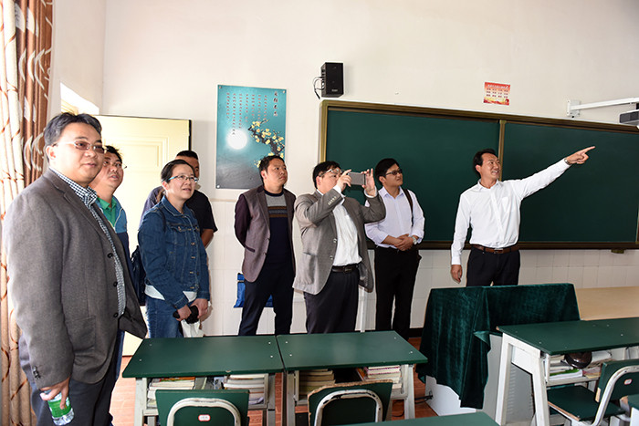 考察團一行首先參觀了學校的孔子雕像、辦公樓、教學樓、食堂、學生宿舍、監控等硬件設施,并在多媒體教室觀看了學校教學活動短片。