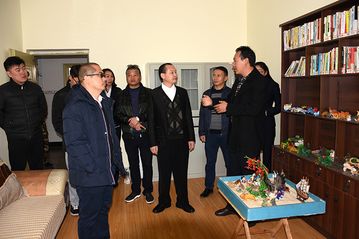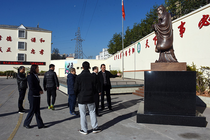 阿四•官鑫主席一行首先參觀了我校辦公樓、食堂、心理輔導室、學生宿舍、孔子雕像、監控設備等校園環境,隨后觀看了學校教學活動短片。期間,魯校長簡要介紹了學校的發展歷程、辦學理念、辦學特色、辦學成果等。