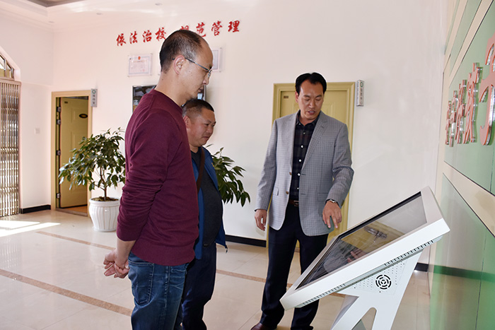 在學校校長的陪同下,朱校長一行首先參觀了學校辦公樓、監控設備、食堂餐廳、孔子雕像、學生宿舍等硬件設施;隨后,在多媒體教室觀看了教學活動短片。期間,魯校長向朱校長詳細介紹了學校的辦學理念、發展歷程、管理模式、辦學特色等內容。