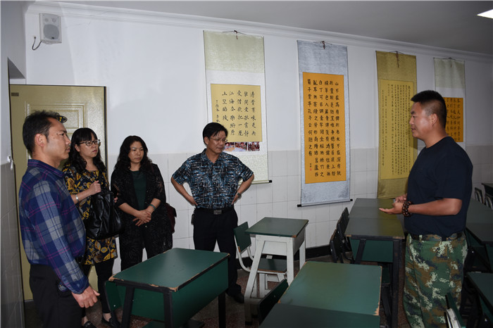 在學校副校長兼總教官毛積敏的陪同下,高校長一行參觀了學校的辦公樓、食堂、曬衣房、學生小教室、心理輔導室、學生宿舍等硬件設施,并在多媒體教室觀看了學校教學活動短片。其間,毛副校長就學校的辦學歷程、辦學特色、管理模式等向高校長一行作了簡要匯報。