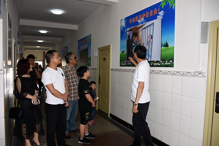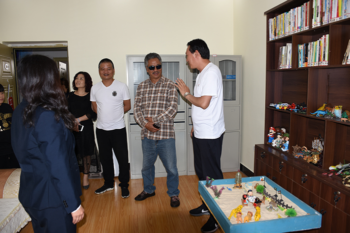 在學校校長、副校長毛積敏、總務主任李月、心理輔導老師趙艷等校領導的陪同下,王總一行參觀了學校的辦公樓、食堂、曬衣房、學生小教室、心理輔導室、學生宿舍等硬件設施,并在多媒體教室觀看了學校教學活動短片。其間,魯校長就學校的辦學歷程、辦學特色、管理模式、辦學效益等向王總一行作了詳細介紹。
