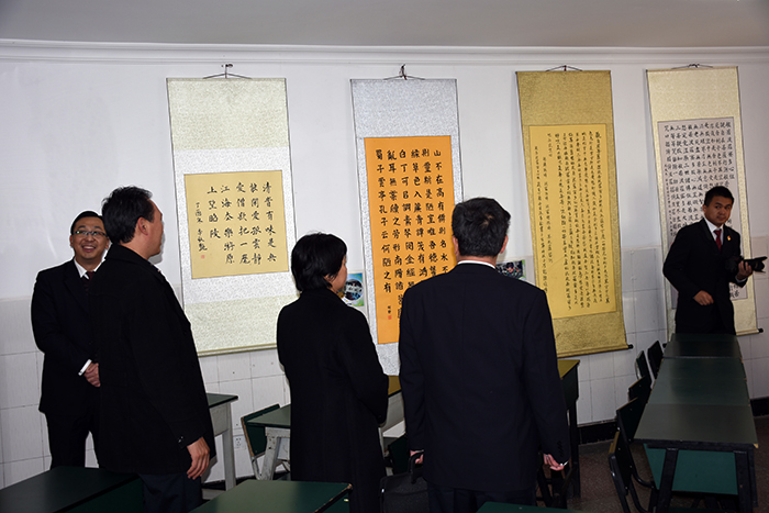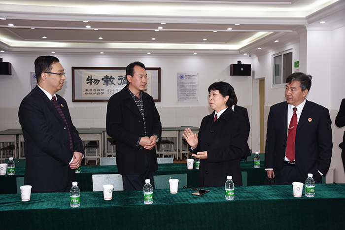 畢檢察長一行在我校魯校長的陪同下,深入學校辦公樓、學生餐廳、學生宿舍、心理輔導室、多功能教室、走廊文化區等逐一參觀,還單獨與我校心理輔導首席專家周榕樺老師進行了深入地工作交流。隨后在多媒體教室觀看了學校教學活動短片,多角度、深層次地對我校的辦學情況進行全面的了解。其間,魯校長還向畢檢察長詳細匯報了學校的辦學理念、辦學特色、發展歷程、辦學成果以及發展定位等。