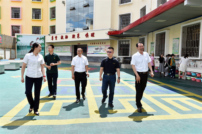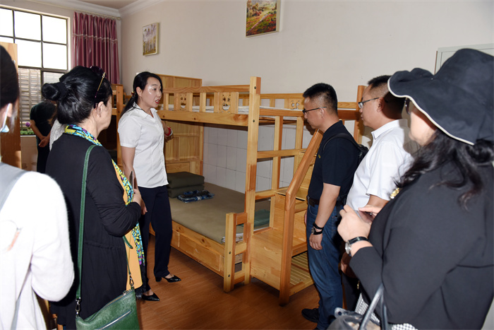 許秘書長一行懷著對學校的關心、關切之情,在校領導的陪同下,首先深入學校的辦公樓、教學樓、宿舍樓、食堂、心理輔導室等地進行參觀。隨后在多媒體教室觀看了學校教學活動短片,更直觀、全面地對學校進行了解。其間,李新紅副校長向許秘書長一行介紹了學校的辦學情況,訪問組一行連連稱贊學校是在做有情懷的教育,為社會傳播了很多正能量。隨后,領導們還親切走到孩子們身邊合影留念。