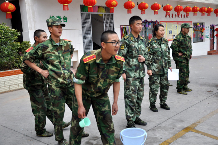 上午,學(xué)校副校長兼總教官毛積敏、副總教官王濤組織學(xué)生開展班級“運(yùn)水接力賽”活動(dòng),規(guī)則是各班同學(xué)在相同的時(shí)間內(nèi)攜帶負(fù)重物接力跑,并且要把對面桶里的水快速用杯子運(yùn)送到自己班的水桶里。一聲哨響,比賽開始了,同學(xué)們用最快的速度來回運(yùn)輸,各班都配合默契,最終比賽得分相差甚少。勝出的班級獲得了“戰(zhàn)利品”,臉上掛滿了笑容,開心的與其他同學(xué)分享著自己的喜悅。