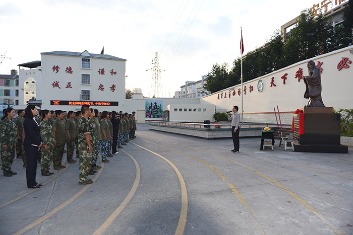 晚餐前,全體師生莊嚴地站在操場上,跟隨魯植校長一起祭拜孔子雕像。魯校長說道:“祭拜孔子雕像,不僅僅要表達對孔子的崇敬之情,更在于可以時時刻刻提醒我們要立德修身、勤而好學,繼承和發揚中華民族的優良傳統。我們要以孔子的智慧和人格為標尺,丈量每天的進步與成長,去遇見更好的自己。”在莊重而簡樸的儀式下,孩子們深切感受到了傳統文化的魅力。