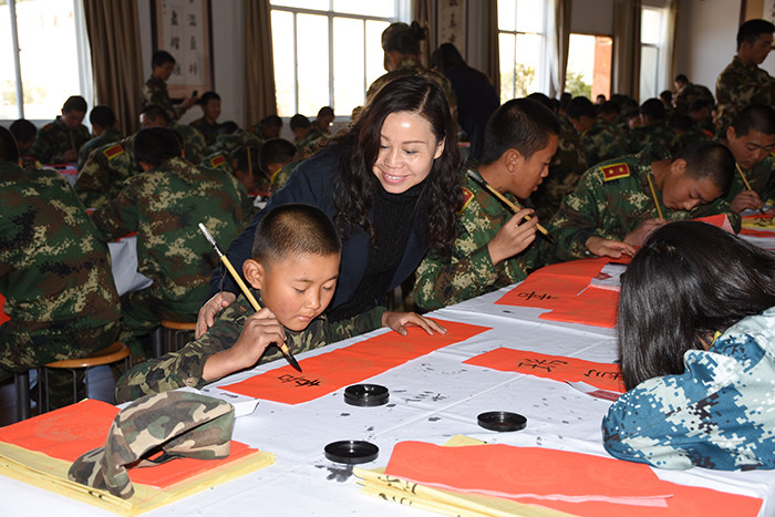 當書法老師韋昌毅把春聯準備好,宣布活動正式開始時,孩子們一個個躍躍欲試,準備大顯身手。