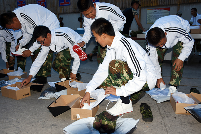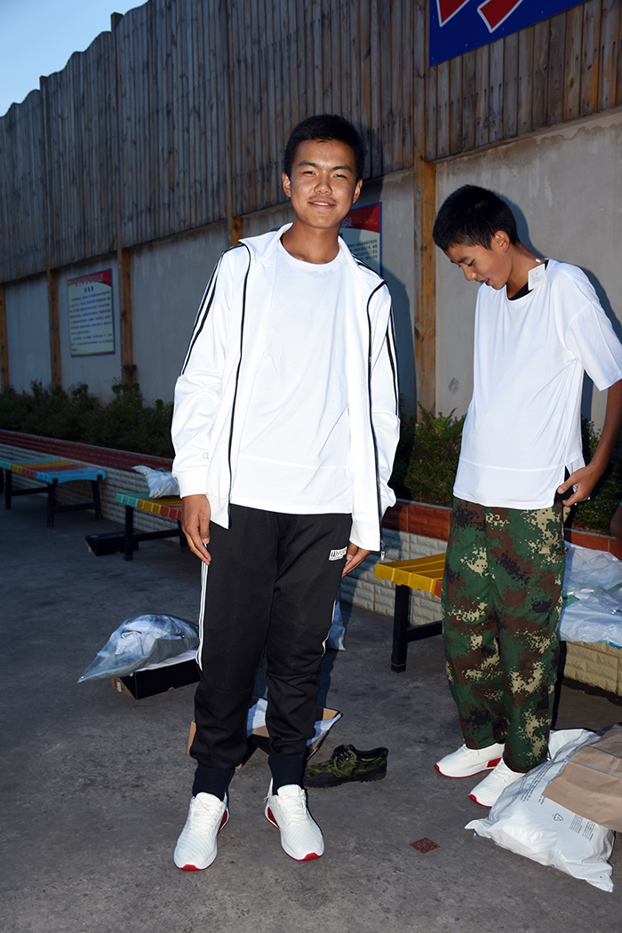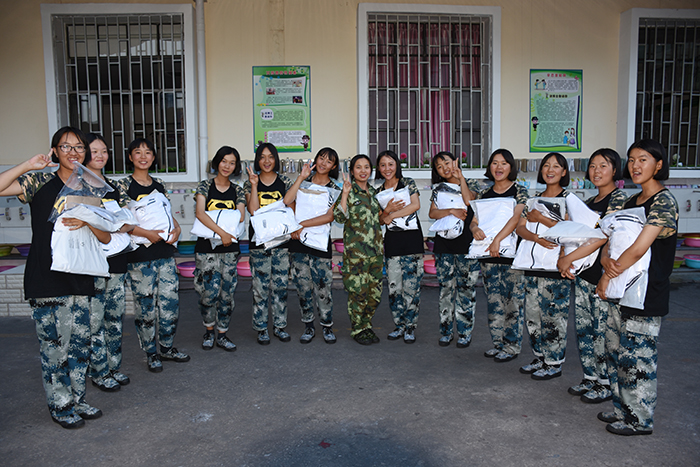領到新裝的孩子非常興奮,不時說著“真好看”、“好喜歡”、“好漂亮”、 “太幸福了”之類的話語,并迫不及待地換上漂亮的校服,站在鏡子面前,左照照、右照照,是那么合身、那么帥氣、那么有朝氣。你瞧,潔白的T恤和外套,配上黑色的褲子,加上白色運動鞋,既莊重又活潑,既樸素又大方。我校使用的迷彩服和運動服作為指定服裝,相得益彰,一個嚴肅,一個休閑,正好符合學校的“嚴管理,善對待”的教學理念,更體現了學校的人文關懷。