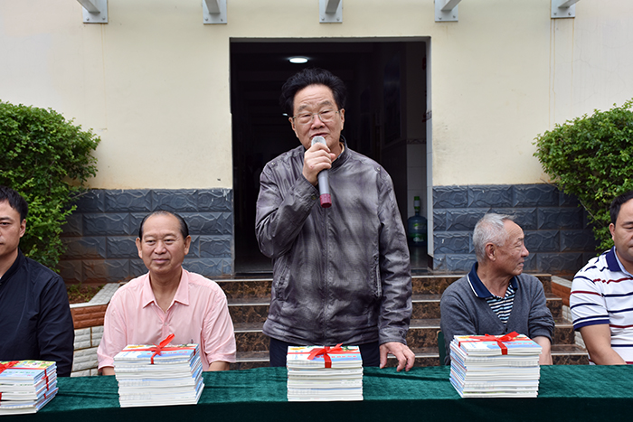 贈書活動前,學校校長魯植致歡迎詞并介紹了到會領導。當孩子們看到鮑主任再一次走進校園,走到他們身邊時,個個興奮不已。當魯校長問同學們有多少人見過鮑爺爺時,孩子們大多紛紛舉手示意,呼聲極高。在孩子們心里,這是位既慈祥又和藹可親的老爺爺。