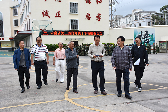 2018年8月23日上午,云南省關工委常務副主任鮑德珠、云南省青少年思想道德研究會會長陳志國、昆明市關工委副主任管宏亮、云南省關心下一代基金會理事長陳學江、核心價值觀圖書捐贈活動辦公室主任賈西越、北京愛接力慈善基金會副秘書長郭建峰等領導一行6人蒞臨我校捐贈圖書。