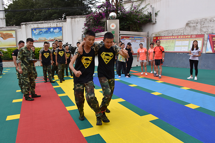 首先進行的是“兩人三足”接力比賽。在裁判的監督下,參賽者兩人一組用紅繩把各自一只腳拴在一起,來回通過50m賽道,用時最短者獲勝。前幾組隊員走的踉踉蹌蹌,后面隊員仔細觀看并找出問題所在,沉著冷靜,一起喊著口令快速通過。在同學們的努力配合下,男生組獲得了第一名,女生組獲得了第三名的好成績。