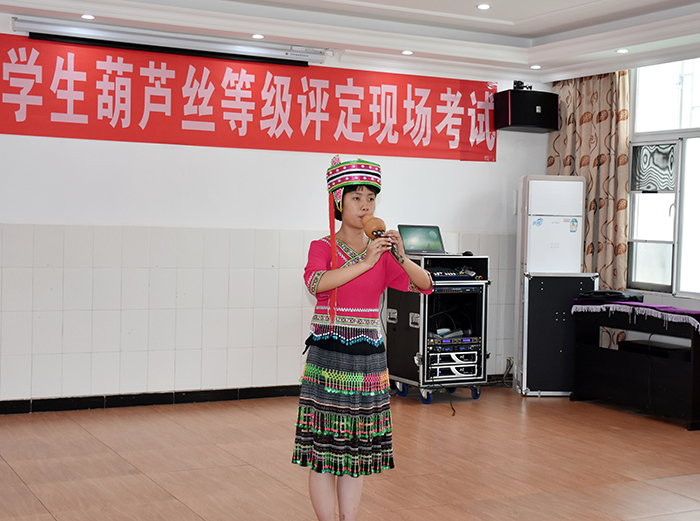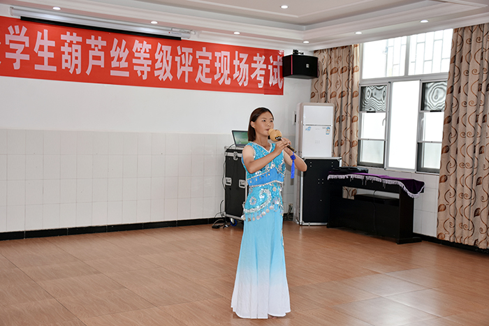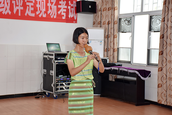 考級過程中,幾位主考官神情專注,認真聆聽考生的吹奏。溫老師首先贊揚了考生們的進取精神,肯定了授課老師馬文駿樂于奉獻、辛勤工作取得的成績。隨后切中要害一一點評,針對存在問題指出要領,對樂曲中的重難點部分著重指出。接著,溫老師循循善誘、深入淺出為考生們詳細講授怎樣吹好葫蘆絲,強調練好基本功的重要性。所有考生受益匪淺。同時,溫老師還向我們反映,有的考生天資不錯;有的考生是下了許多功夫,有扎實的基礎,演奏水平較高;有的考生具備了往專業方面發展的潛力。并夸贊我們葫蘆絲日常教學卓有成效。
