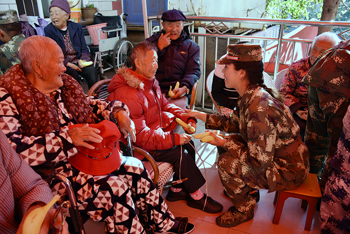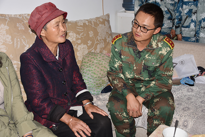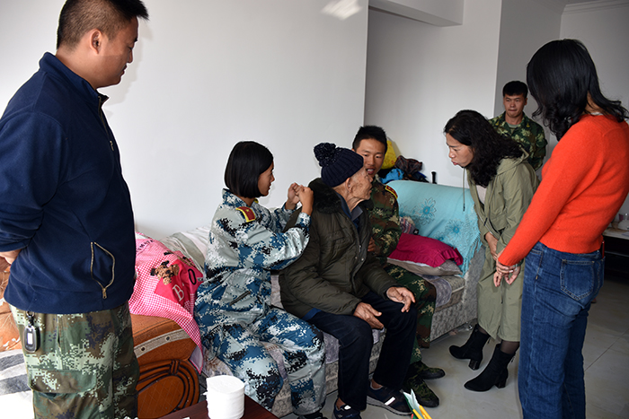 21位老人中,年齡從60歲到100歲之間不等,當我們敲開了一戶戶老人的家門,送上生活用品,和他們噓寒問暖,為他們捶背揉肩時,小小的舉動卻像大大的太陽溫暖著老人們的心。但在一次次的近距離接觸中,每家每戶不同的境遇卻一次次撞擊著我們的心扉。有的因為兒女孝順而安享晚年;有的因為夫妻一生相守很短,卻要用余生懷念的憂傷落寞;有的因為體弱多病一個人在家的孤寂......跟著老人們的不同境遇,聆聽老人們講述的故事,我們的心里或艷陽高照,或大雨傾盆。但不論生活如何艱辛,老人們樂觀、堅韌的品格給我們留下的印象卻是最深刻的。