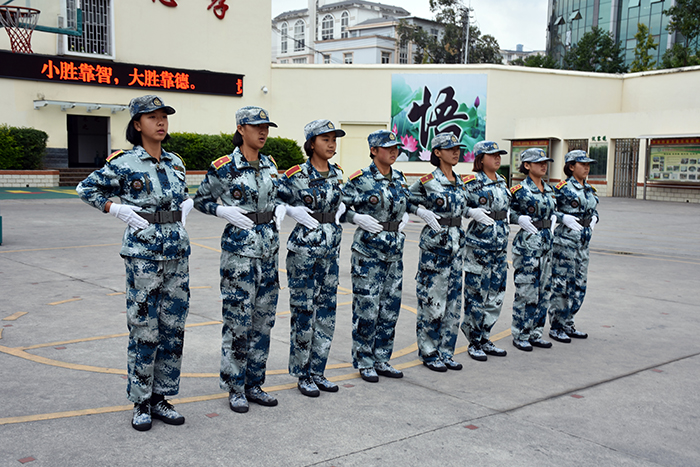 這是同學們一個月來頭頂烈日,櫛風沐雨,磨礪意志,挑戰極限,自我超越的檢驗,也充分展示出了軍訓的優良作風和豐碩成果,更突顯了學校的德育特色和校訓精神。那一片迷人的軍綠,成為了一道美麗的風景。