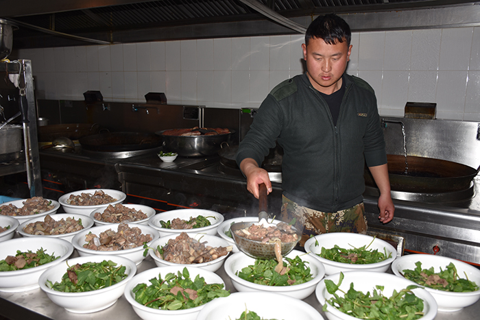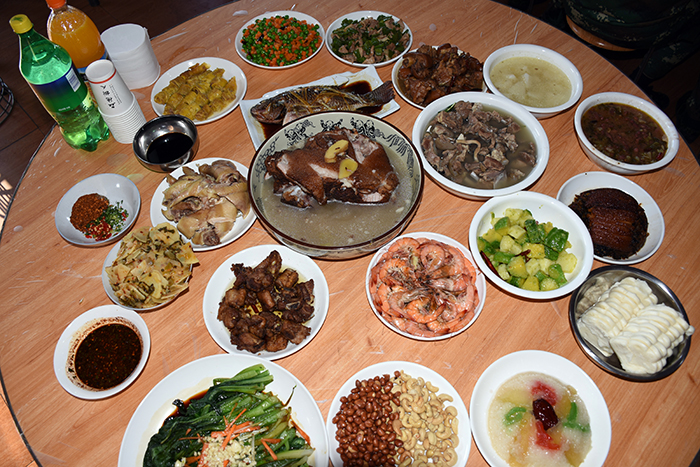 為了準(zhǔn)備豐富的年夜飯,老師和同學(xué)們從上午就開(kāi)始忙碌著,一起幫學(xué)校廚師們打下手。同學(xué)們有的撿菜,有的洗碗,有的洗菜......到了下午,一盤盤色香味俱全的菜肴就呈現(xiàn)在大家面前,伴隨著隆隆的鞭炮聲,年夜飯開(kāi)始了。