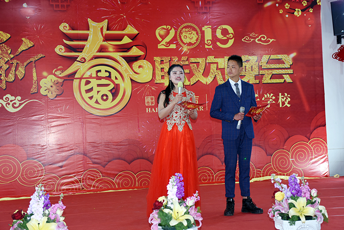 晚會歷時兩個半小時,在節目開始前,魯校長首先做了新年致辭,回顧了過去一年學校開拓進取、改革創新所做的標志性大事:組織老師到北京、山東、深圳、廣東、湖南、重慶等地開展交流研學,帶領同學走向國際大都市香港、澳門、三亞等地游學。學校踏上從校內改革走向校外改革、從省內改革走向國際改革、從內部活動走向外部活動的嶄新征程。同時,魯校長殷切希望同學們從行動上體現出來,在這里好好學習,熱愛學校、尊重老師、感恩父母、為自己的人生目標努力奮斗,超越之前的師哥師姐,贏在轉折點。最后,魯校長衷心祝愿全體師生以及家長新年快樂、萬事吉祥!