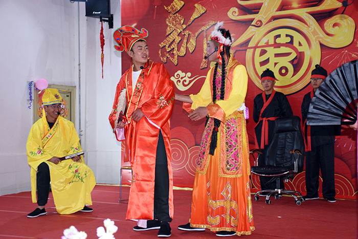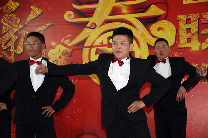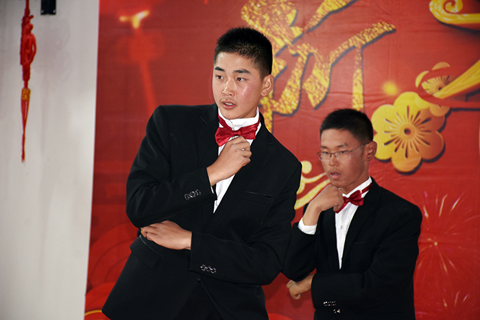 隨后,由學生王璐瑤、王佳曉和老師李月、王清恒主持的舞蹈、小品、朗誦、獨奏等14個精彩節目輪番登場。伴隨著一班、三班、十六班帶來的開場舞《恭喜發財》,晚會正式拉開帷幕,大家在熱情的旋律中開心地感受著濃郁的過年氛圍。