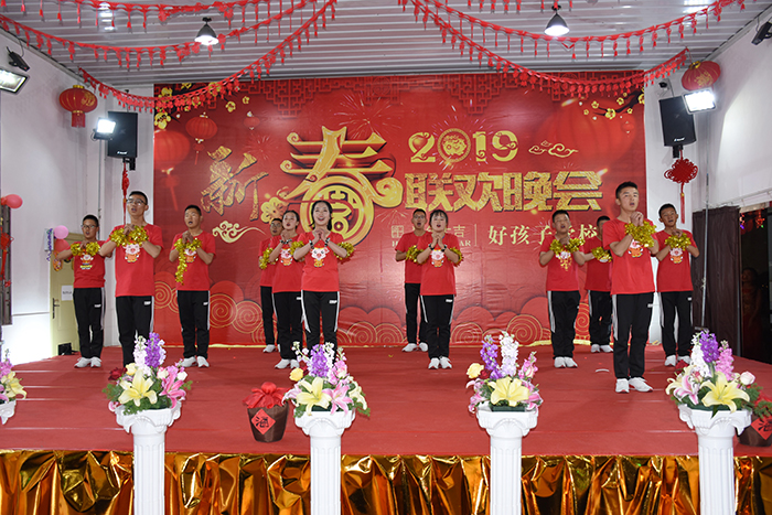 瑞犬凱歌辭舊歲,金豬送福迎新春。2019年2月5日(大年初一)晚,好孩子學校多功能廳成為了師生聯歡的舞臺、歡樂的海洋,我!2019年春節聯歡晚會”在這里隆重舉行。學校校長魯植、副校長兼總教官毛積敏、辦公室主任單官昱、總務主任李月、辦公室副主任施頻頁、副總教官王濤、張汝云等中層以上干部及老師參加了活動。我校畢業生李哲、韓凈宇同學及其父親也出席了本次晚會。