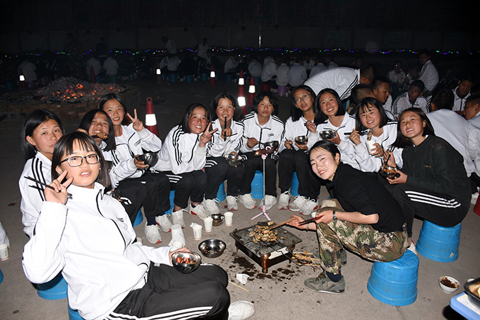 一段勁歌熱舞后,大家期待已久的燒烤正式開始。校領導及各班主任陪伴著孩子們圍坐在早已準備好的火盆旁,親自動手烤起了燒烤。大家一邊吃燒烤一邊暢聊,無比開心快樂,不時還有學生舉杯互道祝福,每個人都沉浸在這歡樂的海洋中!