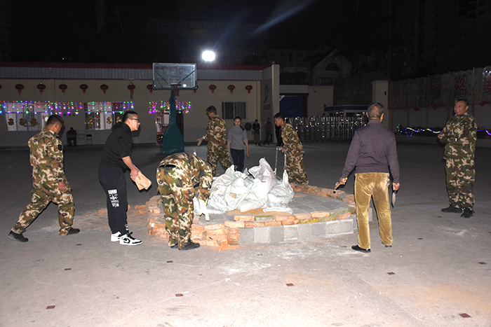 當天下午,學校就抽派老師做篝火晚會的前期準備工作,畢業生唐梓銘、陶杰回校探望,也和老師一起打下手,活動在晚餐后兩小時(20:00)正式拉開序幕。