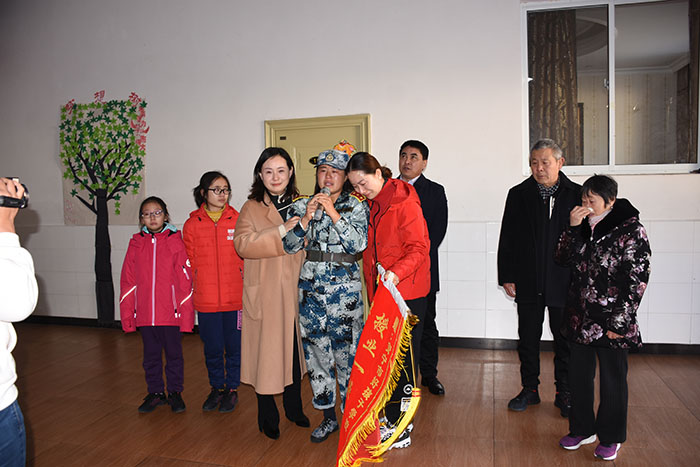 為表達學校及全體老師對孩子的培育之情,路航的媽媽特地將一面繡有“授業(yè)一絲不茍 解惑無微不至”字樣的錦旗贈給學校,我校副校長兼心理輔導首席專家周榕樺、班主任字貴芬老師代表學校接下了這面意義深刻的錦旗。
