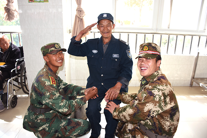 在和每位老人依依惜別時,一個個軍禮,代表著孩子們對老人的敬重,老人們一句句夸贊與叮囑,更鞭策著孩子們要好好做人,好好學習,做新時代的接班人。