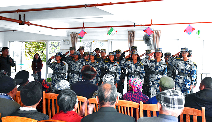 離別時,孩子們用在校所學的葫蘆絲為老人們演奏了《荷塘月色》,瀟灑歡快地表演了《女兵操》,有的孩子還大膽上臺深情獨唱《異鄉人》,來自深圳的同學則用純正的粵語演唱了《光輝歲月》,最后還一起唱響了《學習雷鋒好榜樣》,共同祝福老人們身體健康,平安快樂。老人們聽后非常感動,不約而同地為孩子們豎起了大拇指,敬老院里不時有歡聲笑語傳出,讓暖陽下的敬老院格外溫馨。