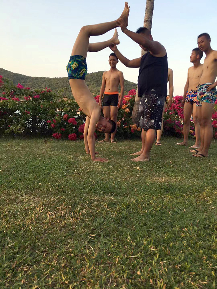7日上午,孩子們又跑到海邊游泳,這或許是云南孩子特有的情愫。有的孩子穿著薄衣薄褲一步一步地邁入海中,眺望遠(yuǎn)方冉冉升起的太陽(yáng);有的又在海灘上狂熱地戲海逐浪;有的懶洋洋的躺在沙灘的躺椅上,瞇眼斜看著流金溢彩的沙灘,聽潮起潮落,一點(diǎn)也不擔(dān)心會(huì)被曬黑,甚至還有種想把自己曬得一身古銅色的小愿望。