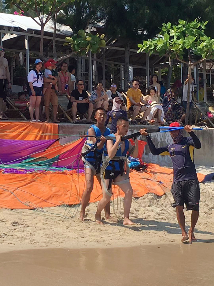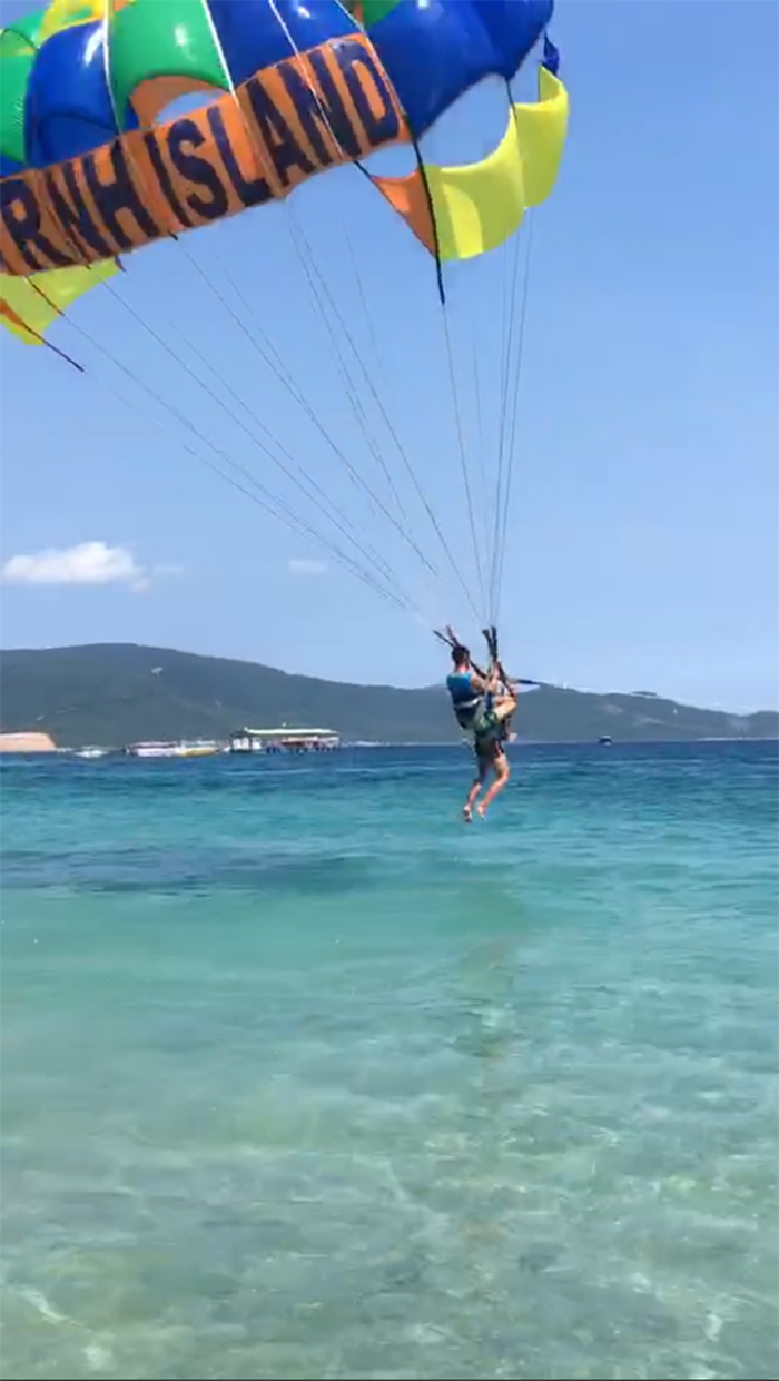 8日上午,孩子們興致勃勃地坐著木船出海到“竹島”游泳、曬太陽(yáng),并在船上享用美味的海鮮風(fēng)味餐,真是寧?kù)o時(shí)光的無盡享受。隨后又去“黑島”玩水上降落傘,陸續(xù)起飛的降落傘不斷從水上的高空飄過,紅黃相間的大傘鼓滿了風(fēng)帆,在碧海藍(lán)天之間劃出了靚麗的弧線。俯瞰深藍(lán)的芽莊大海,像是鳥兒一般在自由自在的飛行。