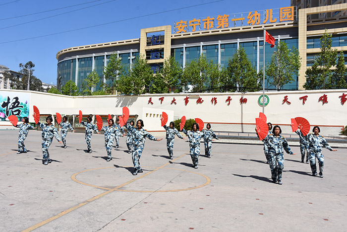 基本隊列動作表演結束后,新生方隊首先進行了《渴望光榮》合唱表演,孩子們唱出了努力找回自信,渴望爭得一份榮耀以及對追逐夢想的無畏,讓場下的人熱血沸騰。隨后女生方隊表演的《太極扇》、《花鼓舞》,更是有種“巾幗何須讓須眉,敢同日月爭光輝”的別樣美麗,征服了在場的每一位師生。緊接著男生方隊進行的擒敵拳、棍術、基本手型步型表演,也深深吸引了大家的眼球。不論是分解動作還是連貫動作,一招一式都被同學們演繹得淋漓盡致。出拳帶風,出腿起塵,一起一落間,剛勁有力,帥氣瀟灑,完成得一絲不茍,幾近完美。最后,全校學生表演的手語操《我相信》,更是燃爆全場,大家跟隨旋律,既用手語,又大聲唱出“拋開煩惱,大聲歡笑,勇敢大步向前”的堅毅果敢,把現場氣氛一度推向了高潮,在場的人也情不自禁跟著一起熱情的跳起來。