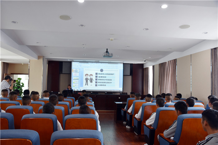 緊接著,專門(mén)負(fù)責(zé)未檢工作的檢察官孫曉宇以“未成年人的權(quán)益保護(hù)”為主題開(kāi)展了法治專題講座。通過(guò)播放動(dòng)漫視頻,用“藥家鑫”、“李天一”等典型案例釋法說(shuō)理,向同學(xué)們講述未成年人不良行為的危害以及如何運(yùn)用心理學(xué)緩解不良情緒,處理危機(jī)事件。同學(xué)們?nèi)虩崆閰⑴c,積極舉手回答問(wèn)題,現(xiàn)場(chǎng)氣氛十分熱烈。