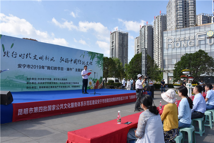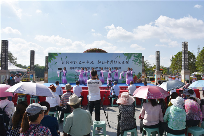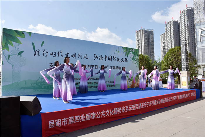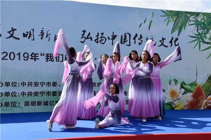 在端午節前一天,由中共安寧市委、安寧市人民政府主辦,中共安寧市委文明辦、中共連然街道工作委員會承辦的2019年“我們的節日•端午”主題活動在東湖廣場舉行。我校受邀參加,并組織部分女生到現場表演了古典舞蹈《端午•屈原》,孩子們漂亮的服飾、優美的舞姿、燦爛的笑容贏得了臺下雷鳴般的掌聲。