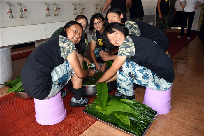 6月7日上午,全體師生在食堂忙碌又精心地準備著包粽子的材料。在老師的指導下,孩子們清洗粽葉、洗米剪繩、分裝糯米、花生、紅豆等餡料到不同桌子。不一會兒,所有材料就準備就緒,大家開始熱熱鬧鬧地包起了粽子。師生們把粽葉做漏斗狀、填糯米、放餡料、壓緊實、封口、彎腰拿繩綁好,有的選手全神貫注,一氣呵成;有的注重細節,精美扎實;有的拿出奇招,調整節奏,提高效率。一時間粽葉飛舞,絲線穿梭,一個個玲瓏而秀氣的粽子很快便誕生了。有三角狀的,有馬蹄型的,還有扁長型的......