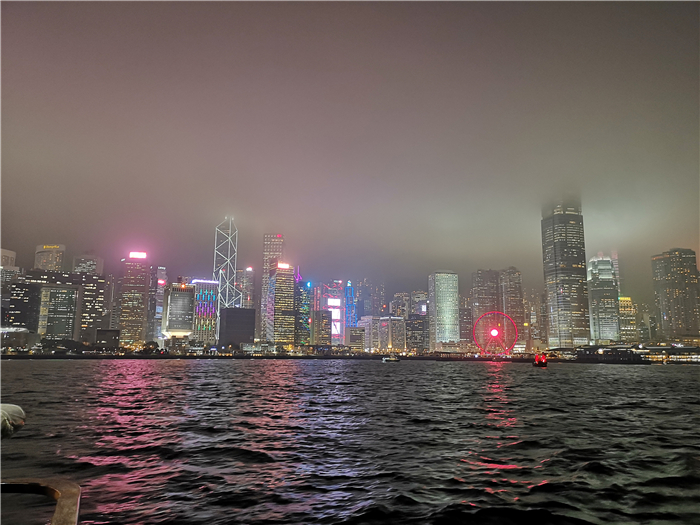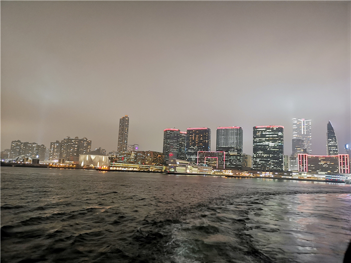 華燈初上,迷人的維多利亞港夜景豈能辜負。經過半天的海洋公園驚險挑戰,大家興致勃勃地來到維港,乘坐著游輪,面朝大海,吹著徐徐晚風,靜靜欣賞沿途風景。會展中心、中國銀行大廈、國際金融中心等幾個地標性建筑物五彩繽紛的燈火如魔術般地閃動著、變幻著,一會兒變成一道道飛泉流瀑,一會兒變成一條條彩帶,一會兒變成一個個舞動的火龍,讓人眼花繚亂,一時間分不清到底是在夢境還是現實之中。清澈的海面倒映著絢麗多姿的燈光,涼風吹過泛起陣陣漣漪,如夢如幻。風中夾雜著一些飄來的水珠,清潤無比,讓奔波了一天的疲意蕩然無存。真的是無論去過香港多少趟,仍會被維港的絕色風華所迷倒。