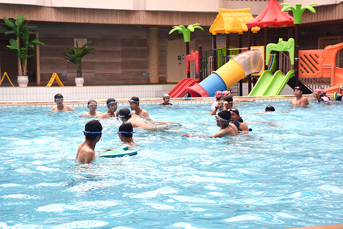2019年7月3日,好孩子學(xué)校第二期游泳教學(xué)課在昆明市干部療養(yǎng)院繼續(xù)開展,30余名師生下水體驗(yàn)。
