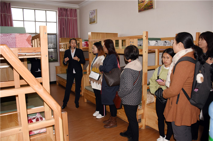 上午八點半,李老師一行就到達學校。在我校校長助理李新紅老師的帶領下,依次參觀了學校辦公樓、食堂餐廳、學生宿舍、心理輔導室等區角,并在多媒體教室觀看了學校教學活動短片。也許同是教育人的緣故,每走到一個地方,李老師都在用心看,有腳步量,看得格外仔細,不時對我校出彩的立德樹人工作連連稱贊。同行的家長們在參觀過程中,也懷著“空杯”心態,認真地學習如何才能更好地教育好青春期或即將進入青春期的孩子。在觀看教學短片時,很多家長不時在反思著自己,也許他們已感受到了自己之前的教育有某些不當;也許是同為父母,情不自禁在為片中孩子的叛逆傷心;也許是因看到這里孩子們的蛻變、成長而高興......總之,很多家長在觀看過程中都不禁潸然淚下。