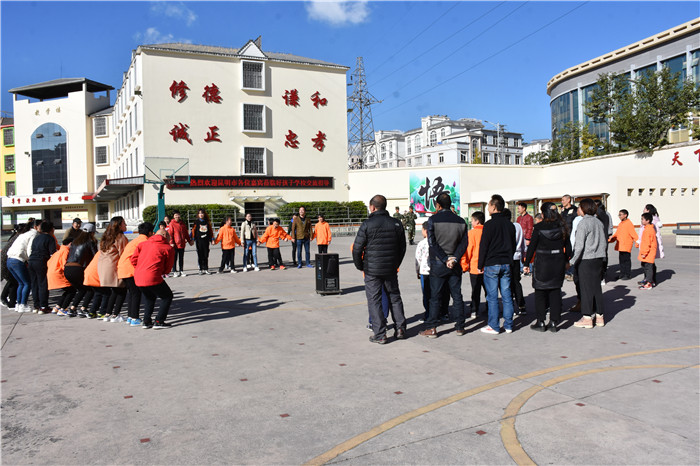 2019年11月30日上午,昆明市盤龍區明通小學五年級4班班主任李秀萍、副班主任譚菊老師率領70余名學生及家長到我校開展以“立品行、啟心靈”為主題的親子教育拓展活動。
