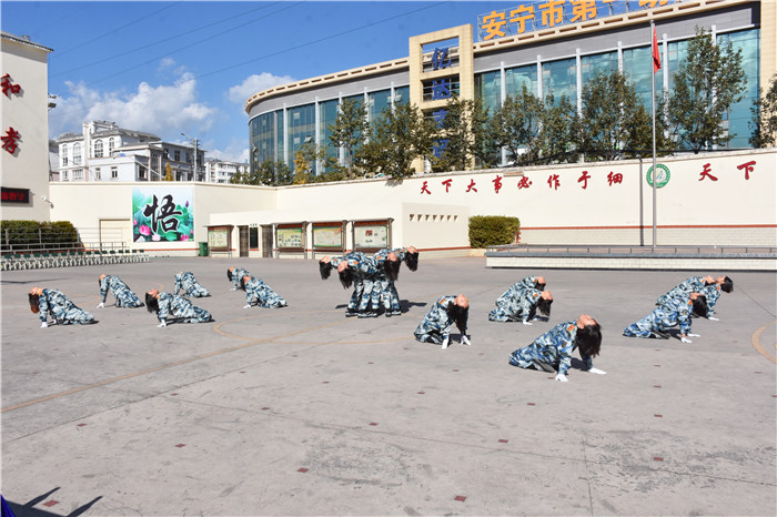 拓展活動過后,并未因此落下帷幕。伴隨著莊嚴的升國旗儀式,我校學生依次為大家帶來了隊列、葫蘆絲合奏、女兵操、棍術操、感恩手語舞等表演。孩子們自信堅毅的目光、整齊劃一的步伐、豪邁嘹亮的口號,以及所展現出的青春陽光、積極向上的態度,都深深地感染著在場的每一位師生、家長,場下不時傳來歡呼與喝彩。