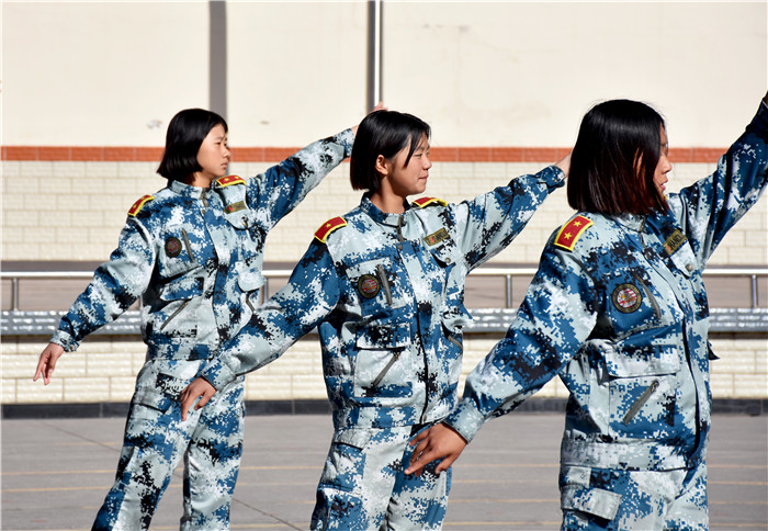 基本隊(duì)列動(dòng)作表演結(jié)束后,各方隊(duì)在教官的指揮下進(jìn)行了擒敵拳、應(yīng)急棍、手語操、女兵操等表演。同學(xué)們整齊的隊(duì)伍、精準(zhǔn)的動(dòng)作、昂揚(yáng)的士氣、嘹亮的軍歌、優(yōu)美的旋律、燃燒的激情贏得了陣陣掌聲。