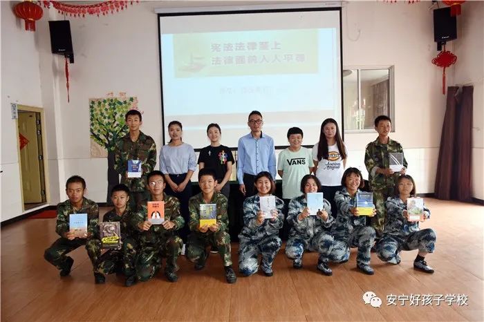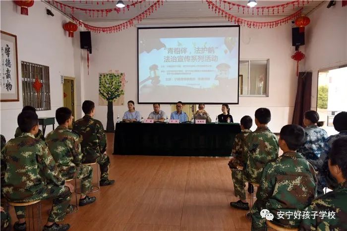 2020年8月24日上午,由共青團安寧市委、安寧市未司辦主辦,安寧市向日葵青少年事務服務中心、安寧市志愿服務發展促進會及安寧好孩子學校承辦的“青相伴,法護航”法治宣傳系列活動在我校舉行。安寧市向日葵青少年事務服務中心主任李曼麗,安寧市非物質文化遺產剪紙傳承人耿明府,安寧市志愿服務發展促進會會長、向日葵青少年事務服務中心副主任李佳妮,安寧市未成年司法項目專干萬瑩,寧湖律師事務所李濤律師等領導一行5人出席了本次活動。