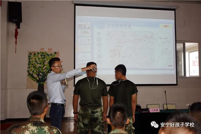 隨后,王老師又通過“是什么偷走了我們的健康?”發問,針對疫情科學防控、防災減災、心理壓力舒緩、常見職業病和慢性病預防改善、中醫經絡養生等多個方面的知識進行了詳細闡述,師生爭先恐后上臺親身感受中醫經絡的美妙,無形中切實提高了師生們的健康意識。