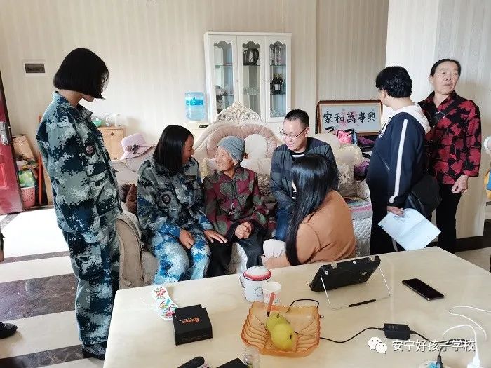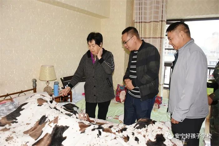 由于時(shí)間關(guān)系,雖然每到一戶(hù)看望老人的時(shí)間不是很長(zhǎng),但師生們的一聲問(wèn)候,幾句細(xì)語(yǔ),微不足道的生活用品.....這些小小的舉動(dòng),卻像大大的太陽(yáng)溫暖著老人們的心,讓老人們眼里不時(shí)泛起了淚花,緊握師生的手遲遲不愿松開(kāi)!