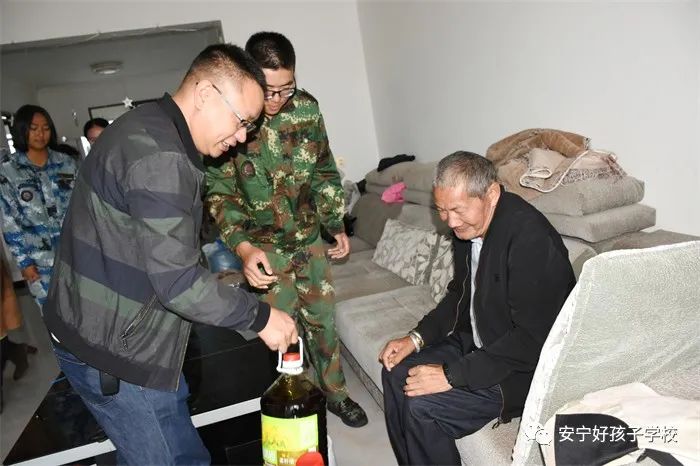 上午九點(diǎn),在光明社區(qū)李金蓮書(shū)記及副主任張蕊的陪同下,學(xué)校執(zhí)行校長(zhǎng)尹斌親自帶領(lǐng)部分老師和學(xué)生,深入老人家中,噓寒問(wèn)暖地與老人聊天拉家常,關(guān)切地詢(xún)問(wèn)老人的身體健康狀況和生活起居情況,叮囑他們要保重身體。每到一戶(hù),尹校長(zhǎng)和孩子們都把提前準(zhǔn)好好的生活用品送到老人手中。