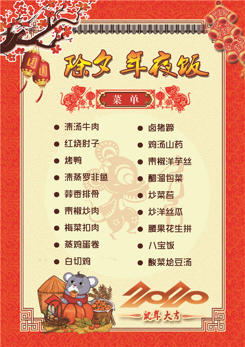 過年了 !孩子們吃什么?這是學校領(lǐng)導幾天來一直思考的問題。經(jīng)過與學校營養(yǎng)師、食堂廚師們多次商議后,本著營養(yǎng)、健康、不浪費,又要保證孩子每餐都能吃上新鮮可口的飯菜,終于議定了菜單,現(xiàn)予以公布。祝孩子們新年快樂!祝全體家長萬事如意!