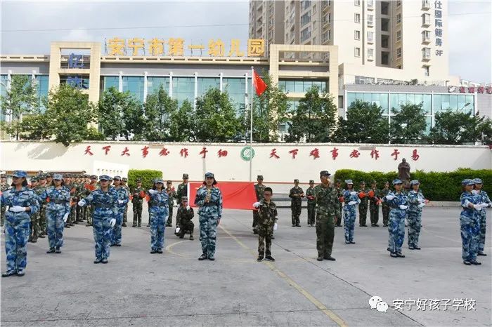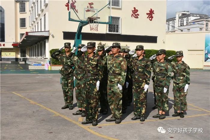 上午九時,國旗護衛隊身姿挺拔、氣宇軒昂護送國旗,在全場師生的注視下,鮮艷的五星紅旗在莊嚴的國歌聲中冉冉升起,軍訓匯演就此拉開序幕。