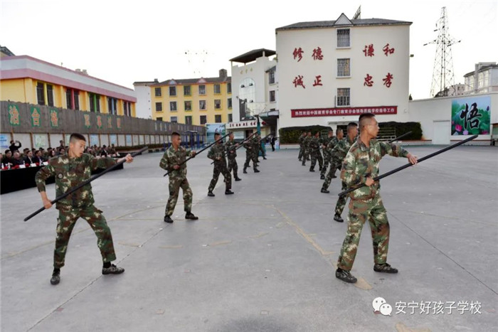匯演尾聲,王理事長作了精彩點評:“今天我們來到好孩子學(xué)校進行調(diào)研,感受頗深。第一是熱情,此次調(diào)研不僅有我們省廳潘處長和市教體局劉副局長的一路陪伴,而且來到好孩子學(xué)校以后,學(xué)校的接待也很熱情,讓我們感受到了春城人民的淳樸好客!第二是贊嘆,好孩子學(xué)校辦學(xué)規(guī)范、理念獨特、措施有力、氛圍濃厚、成效明顯,校園干凈整潔,師生精神風(fēng)貌良好,人文關(guān)懷做得也很好,是個既嚴厲又溫暖的育人之地,給我們留下了非常好的印象。第三是驚訝,學(xué)校短短十年間,就改變了數(shù)千名孩子,真的讓我們非常驚訝。我不禁想起教育的一句話‘教育的特殊性,是為了人的成長來服務(wù),是一個生命影響一個生命的過程。’好孩子學(xué)校緊緊抓住做教育的這個真諦,嚴格訓(xùn)練、嚴格管理、嚴格要求,從心理學(xué)角度,認真分析問題成因;從好習(xí)慣入手,狠抓良好習(xí)慣的養(yǎng)成教育。可見在培養(yǎng)孩子行為習(xí)慣、心理健康上下了大功夫,才能使那么多孩子回到了正常的主流生活中,你們?yōu)楫?dāng)?shù)厣鐣C合治理做出了很大貢獻。今天孩子們的表演也非常精彩,足以看出日常的訓(xùn)練有多么規(guī)范,也可見學(xué)校是多么注重孩子們的興趣培養(yǎng)與激發(fā)。總之,不枉此行!”