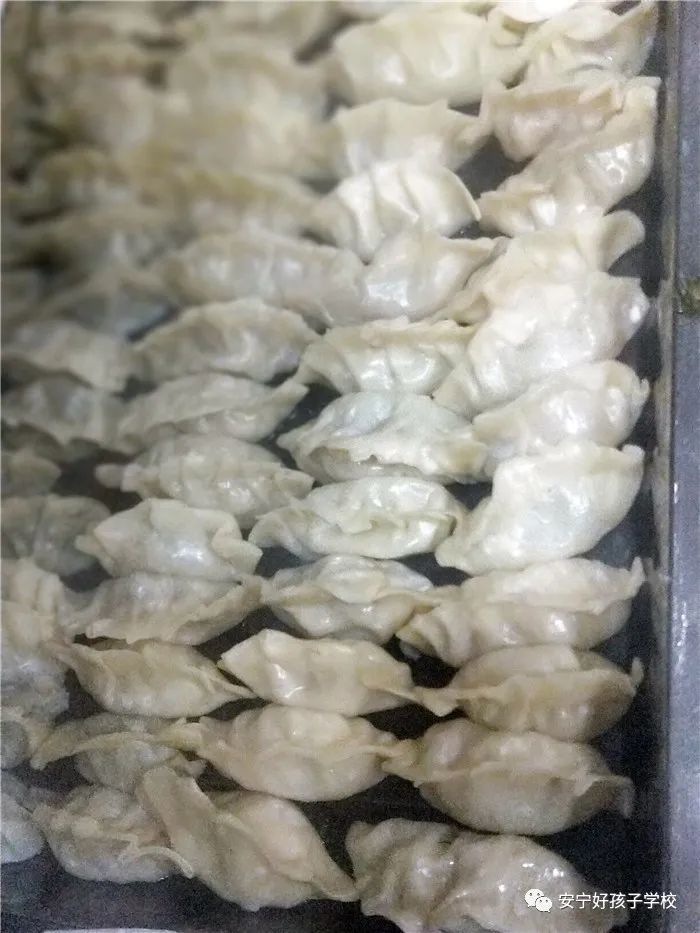 在一片歡聲笑語中,花樣繁多、千姿百態的餃子便誕生了。有敦實厚重的,有別致精巧的,還有四不像的,蝴蝶餃、牡丹餃、月牙餃、元寶餃等造型相繼出現。有的同學學得很快,不一會兒就有模有樣的包起來,有的同學也想學心靈手巧的老師那一絲巧勁繞指柔,無奈還是在略顯笨拙的動作中“露餡”了,嘗試很多次才“馴服”了那溫柔的餃皮兒,但包出的餃子卻一樣的香甜!
